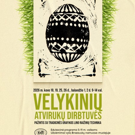 Artėjant gražiausiai pavasario šventei – Šv. Velykoms – Brazauskų namai-muziejus atveria duris mažiesiems kūrėjams. Kviečiame 5–11 metų vaikų grupes pasinerti į magišką grafikos pasaulį ir patiems pasigaminti unikalius šventinius sveikinimus.